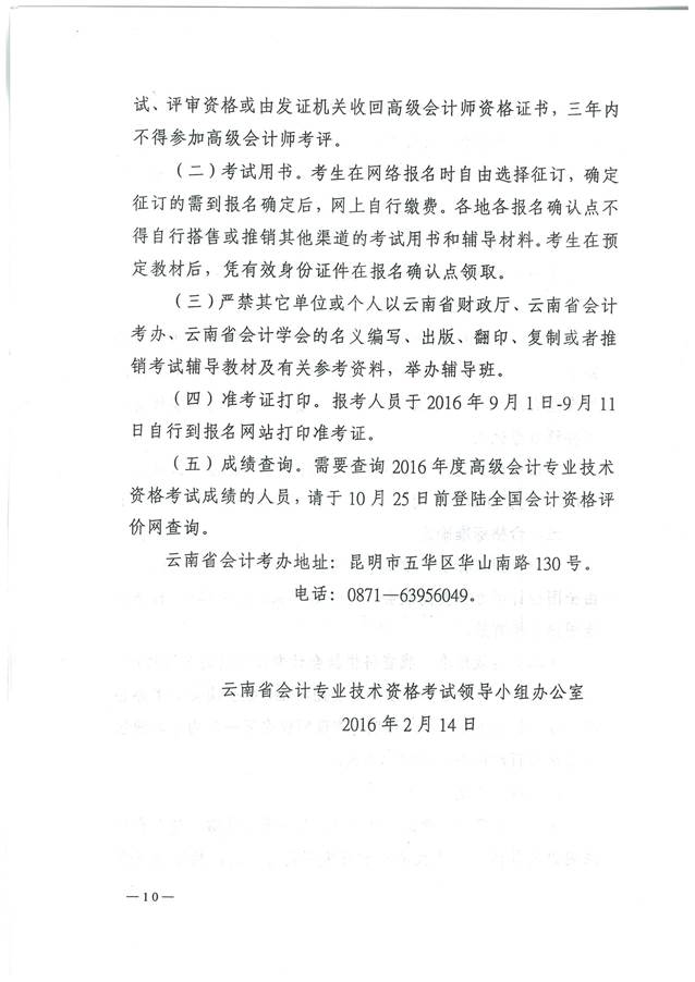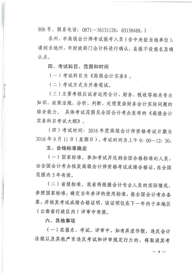 云南省2016年高級會計師資格考評結合工作有關問題通知
