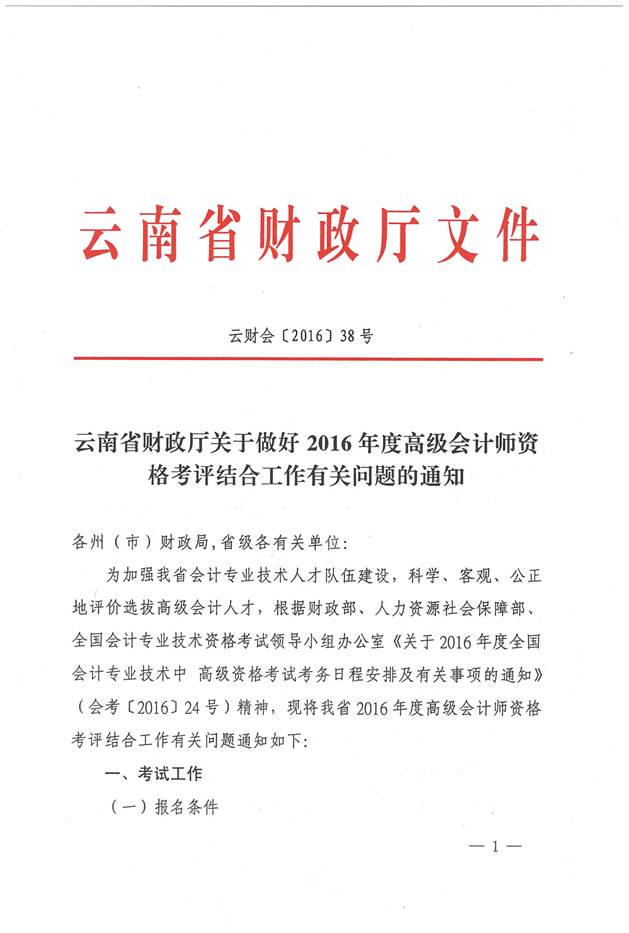云南省財政廳關于做好2016年度高級會計師 資格考評結合工作有關問題的通知 云南省高級會計師考評流程及注意事項