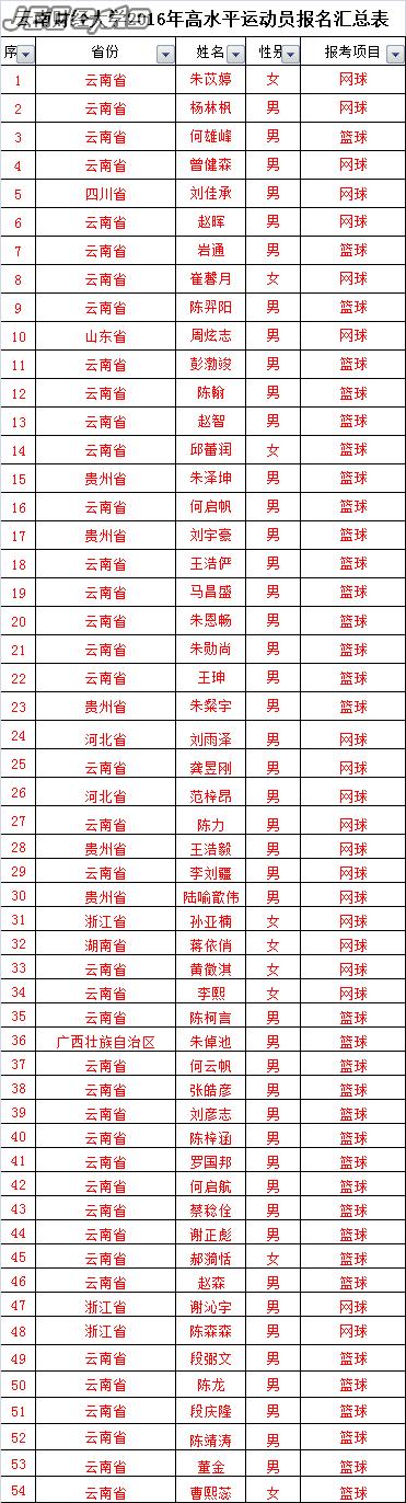 1、報(bào)名材料或手續(xù)不全考生,欠缺報(bào)名材料和手續(xù)無需重新郵寄,在3月4日下午14:30到云南財(cái)經(jīng)大學(xué)體育館會議室資格審查時(shí)一并提供;請考生務(wù)必帶齊身份證、運(yùn)動(dòng)員等級證書、近三年比賽獲獎(jiǎng)證書、比賽秩序冊、成績冊原件進(jìn)行查驗(yàn)。
