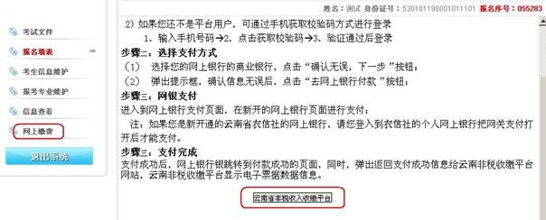 16、點(diǎn)擊左側(cè)“網(wǎng)上繳費(fèi)”閱讀繳費(fèi)相關(guān)說明,點(diǎn)擊【云南省非稅收入收繳平臺(tái)】進(jìn)入“網(wǎng)上支付”頁面(說明:請(qǐng)關(guān)閉瀏覽器攔截彈出窗口選項(xiàng),支付頁面在彈出窗口中);
