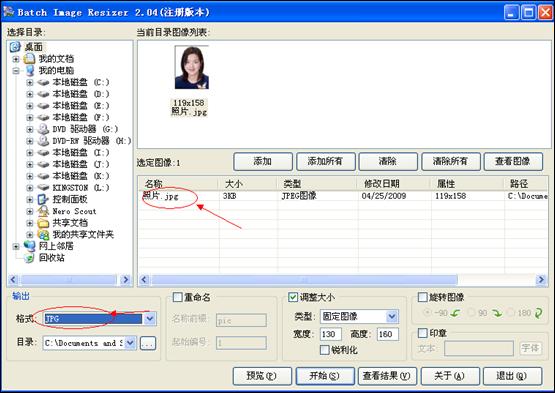 6、調(diào)整圖像大小,將其設(shè)置為130(寬度)×160(高度);