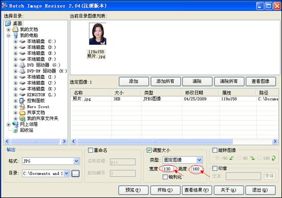 照片的尺寸大小要求為160像素(高)×130(寬)像素,此為系統(tǒng)默認(rèn)要求像素,實(shí)際操作中可以有稍許偏差,為防止畸變,可將其調(diào)整為160(高)×120(寬)的標(biāo)準(zhǔn)像素。