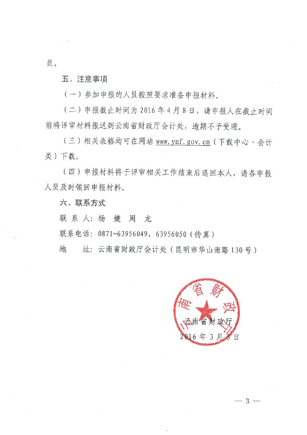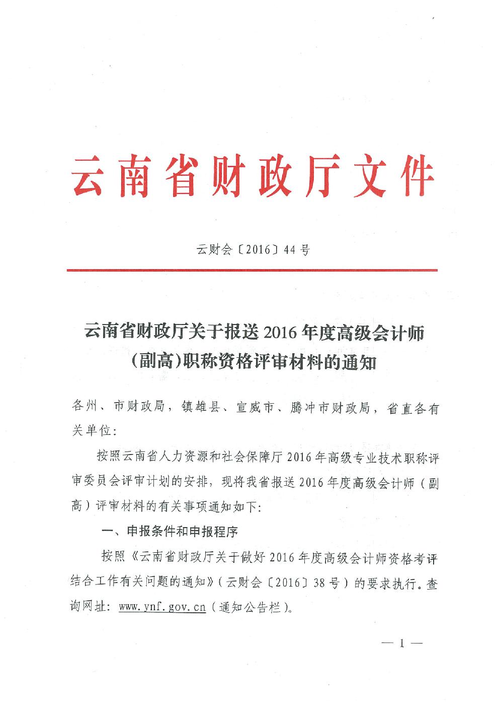 云南省2016年高級(jí)會(huì)計(jì)師(副高)職稱(chēng)資格評(píng)審材料通知