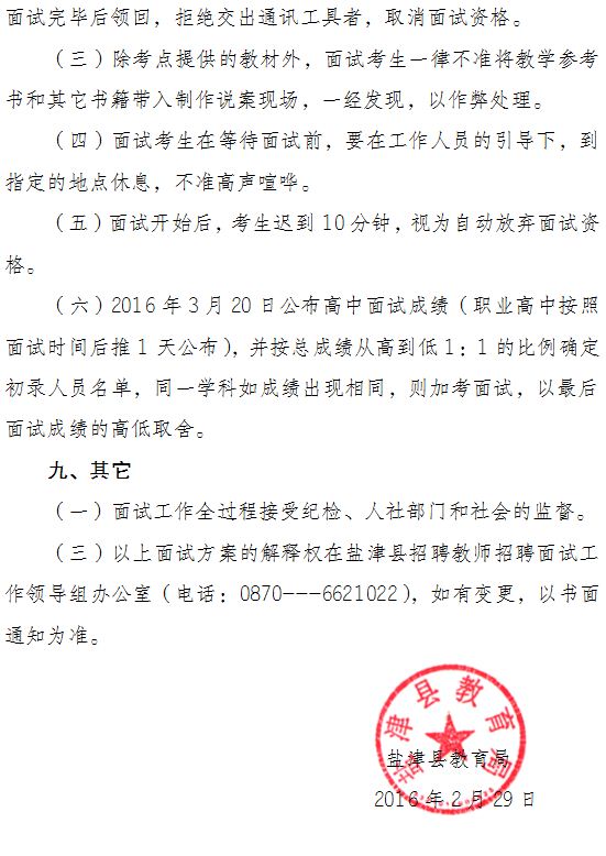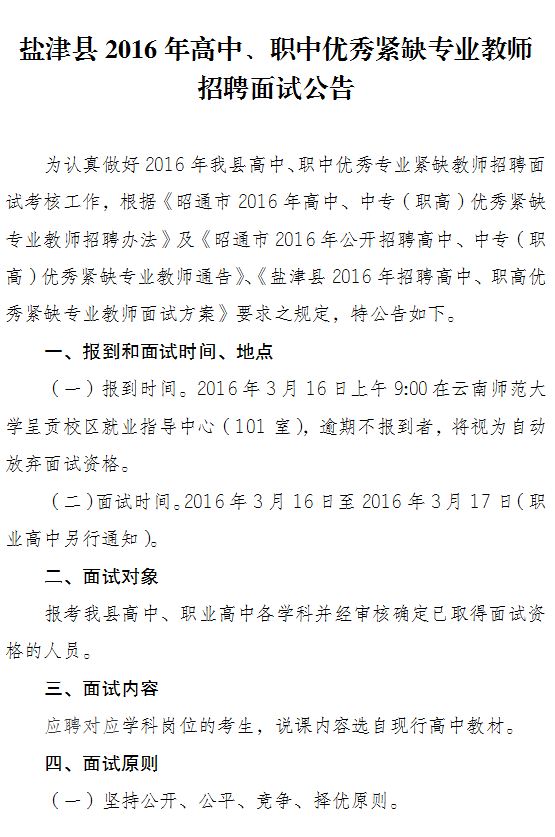 鹽津縣2016年高中、職中優(yōu)秀緊缺專業(yè)教師招聘面試公告