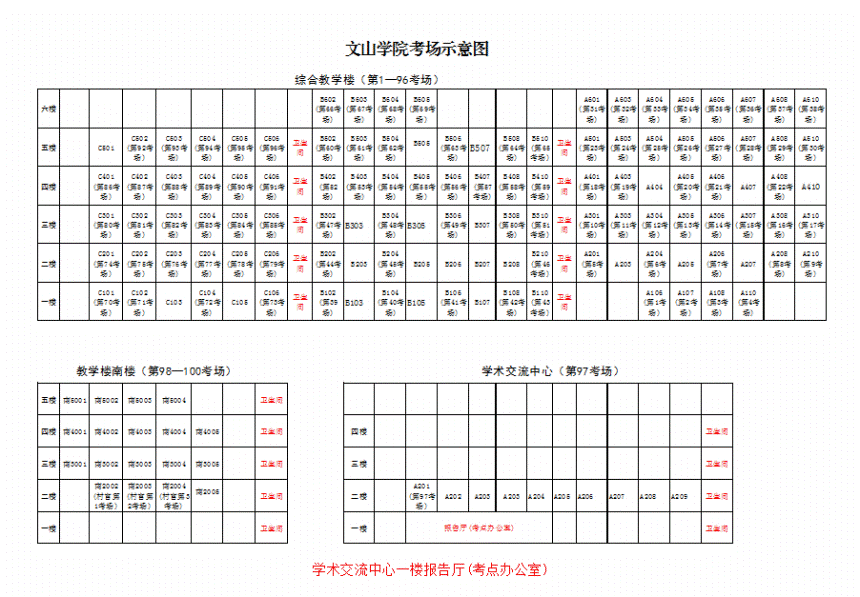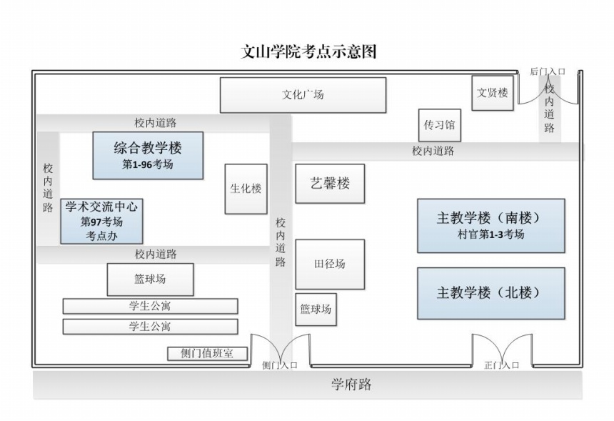 文山州2016年考錄公務(wù)員筆試文山學(xué)院考點(diǎn)、考場(chǎng)示意圖
