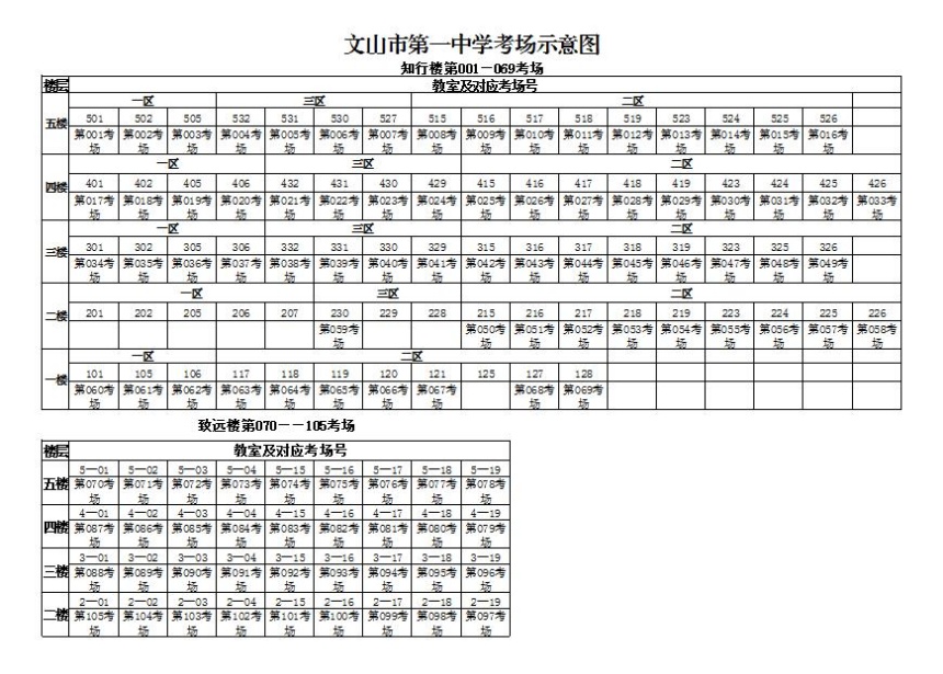 文山州2016年考錄公務(wù)員筆試文山市第一中學(xué)考點(diǎn)、考場示意圖