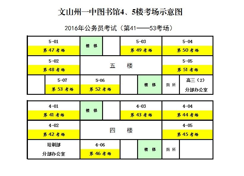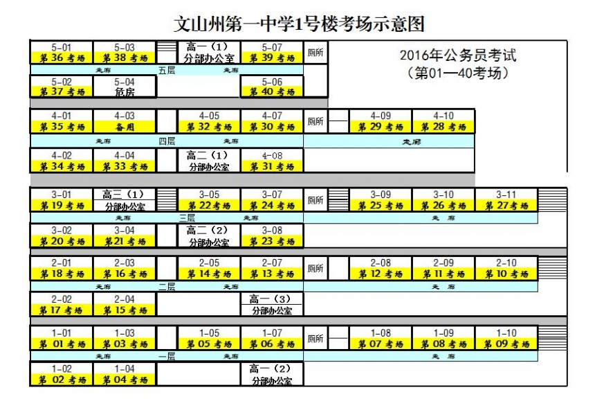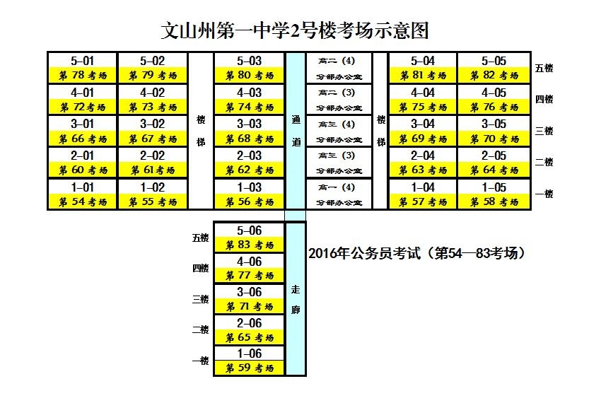 文山州2016年考錄公務(wù)員筆試文山州第一中學(xué)考點、考場示意圖
