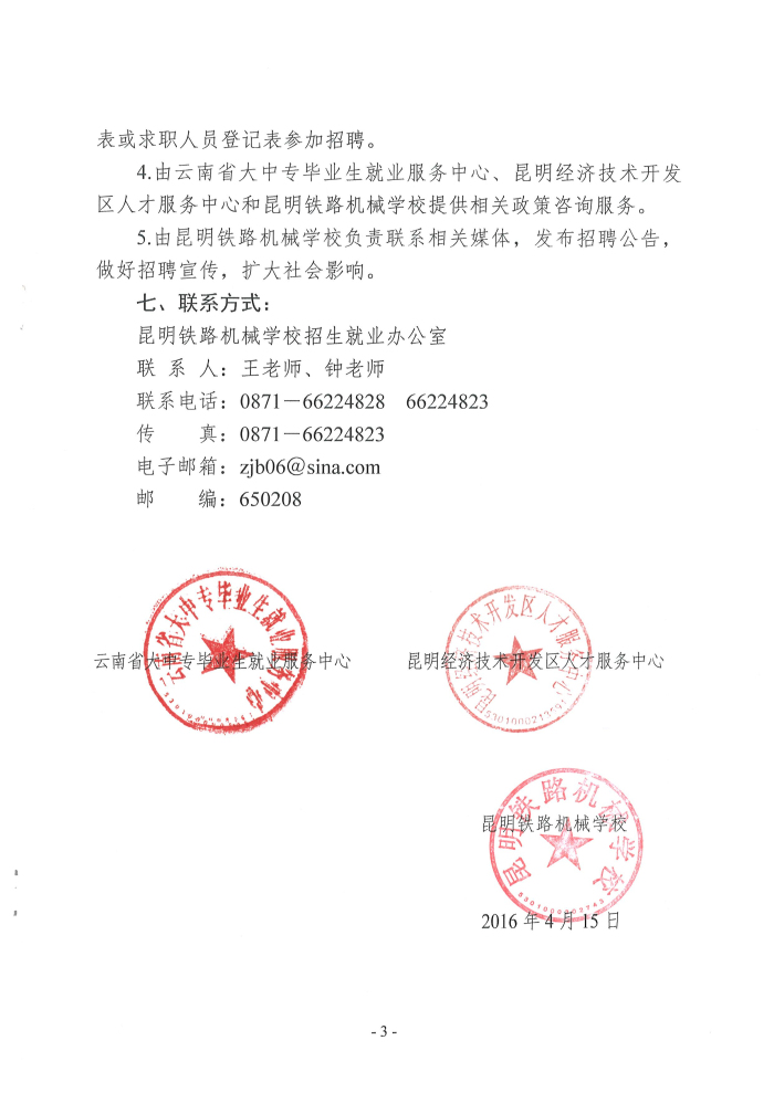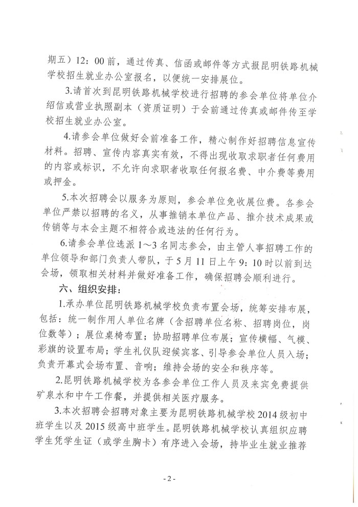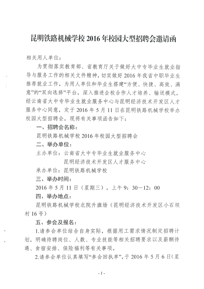 昆明鐵路機械學校2016年校園大型招聘會邀請函