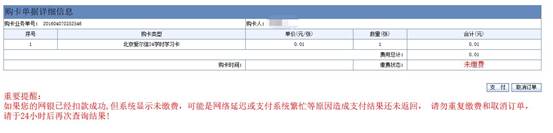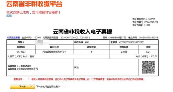 支付完成以后會(huì)顯示電子票據(jù),請(qǐng)保存好電子票據(jù),同時(shí)請(qǐng)點(diǎn)擊下一步,發(fā)送繳費(fèi)通知,否則由于系統(tǒng)收不到繳費(fèi)通知,可能不會(huì)分配卡號(hào)。