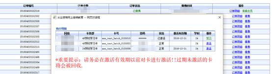 顯示需要激活的卡片,以及學(xué)習(xí)中的卡片,請(qǐng)?jiān)诩せ钣行谝郧凹せ?;點(diǎn)擊激活系統(tǒng)會(huì)跳轉(zhuǎn)到相應(yīng)的網(wǎng)校,請(qǐng)大家在網(wǎng)校頁面進(jìn)行激活,網(wǎng)校激活的同時(shí)請(qǐng)?jiān)诰W(wǎng)校段修改密碼,已激活的學(xué)習(xí)卡系統(tǒng)不在顯示密碼.