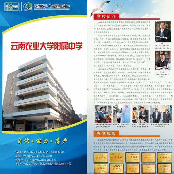 2016年學(xué)校計(jì)劃面向云南省招生800人,其中招收初中新生500人(10個(gè)班),高中新生300人(6個(gè)班)。