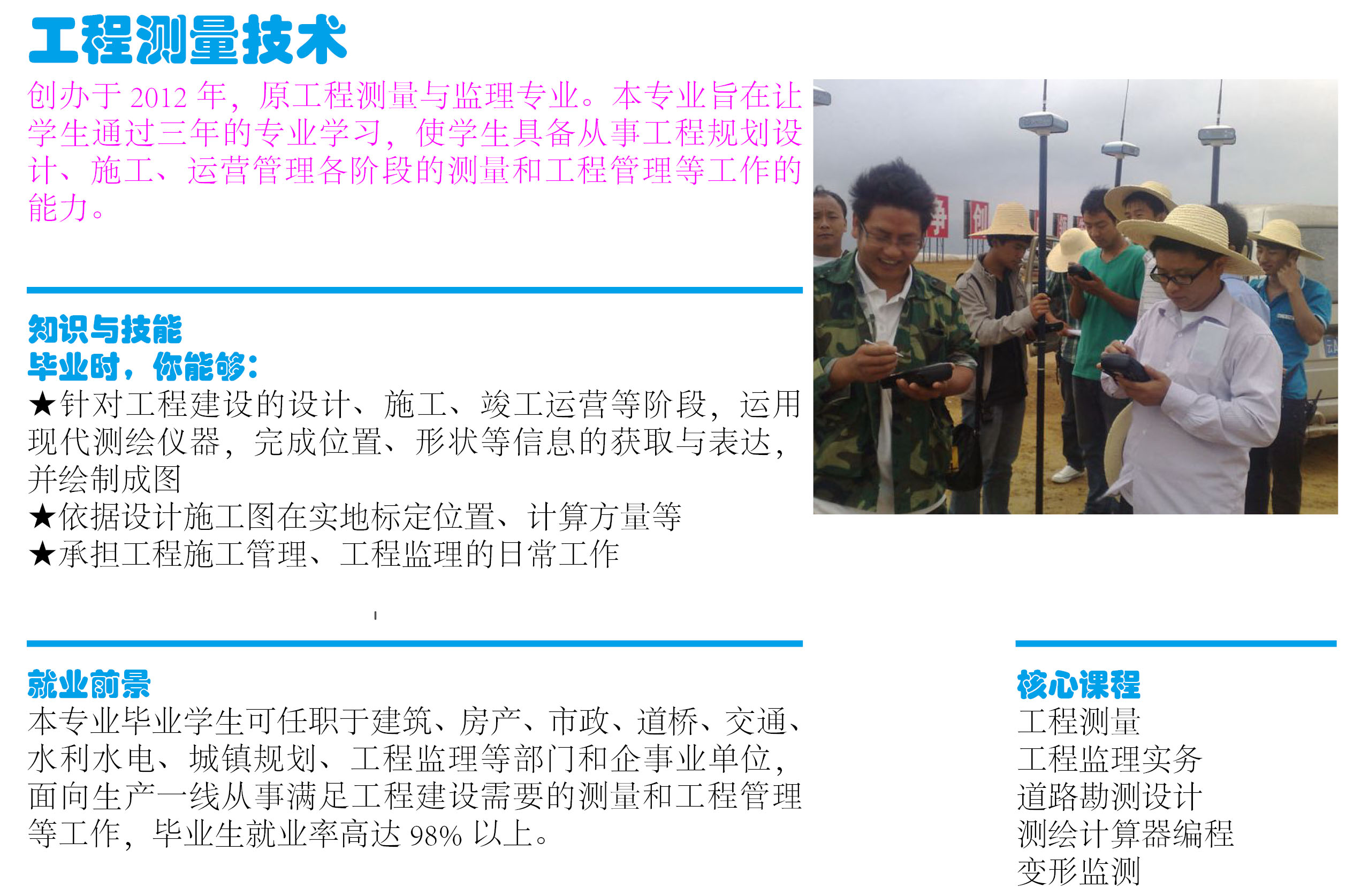 全系師生正以飽滿的熱情和不斷開拓創(chuàng)新的姿態(tài),繼續(xù)以專業(yè)建設(shè)為龍頭,學(xué)生就業(yè)為導(dǎo)向,加強(qiáng)教學(xué)、科研、社會(huì)服務(wù)和人才隊(duì)伍建設(shè),努力為國(guó)家經(jīng)濟(jì)建設(shè)測(cè)繪地理信息產(chǎn)業(yè)技術(shù)性人才培養(yǎng)做出最大貢獻(xiàn)。