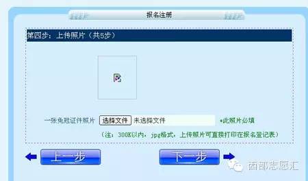 9.上傳個人照片。(http://west.youth.cn/zyz/user_reg4save.jsp?step=4),此項為必填項。照片大小300K以內(nèi),jpg格式,上傳照片可直接打印在報名登記表。