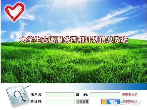 2.進入報名頁面。點擊報名入口導航欄進入大學生志愿服務(wù)西部計劃信息系統(tǒng)(http://west.youth.cn/main/login.html)。