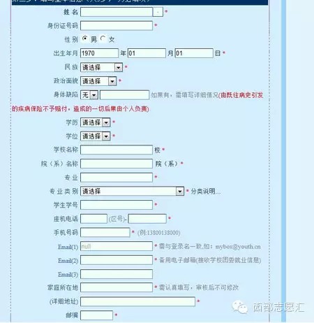 7.填寫基本信息。(http://west.youth.cn/zyz/user_reg4save.jsp?step=2),按要求填寫,注意帶紅色五星為必填項,完成后點擊下一步。