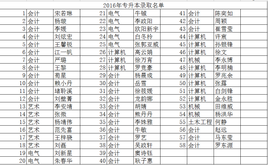 云南大學(xué)滇池學(xué)院2016年專升本一志愿錄取名單公布