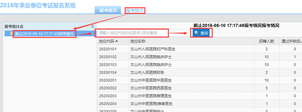 2)您還可以在查詢輸入框中,輸入指定的崗位代碼,精確查看某個崗位的報考情況。