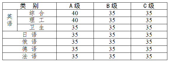 一、根據(jù)我省2016年職稱(chēng)外語(yǔ)等級(jí)考試的總體情況,結(jié)合專(zhuān)業(yè)技術(shù)職稱(chēng)評(píng)聘實(shí)際需要,現(xiàn)確定省內(nèi)合格標(biāo)準(zhǔn)如下: