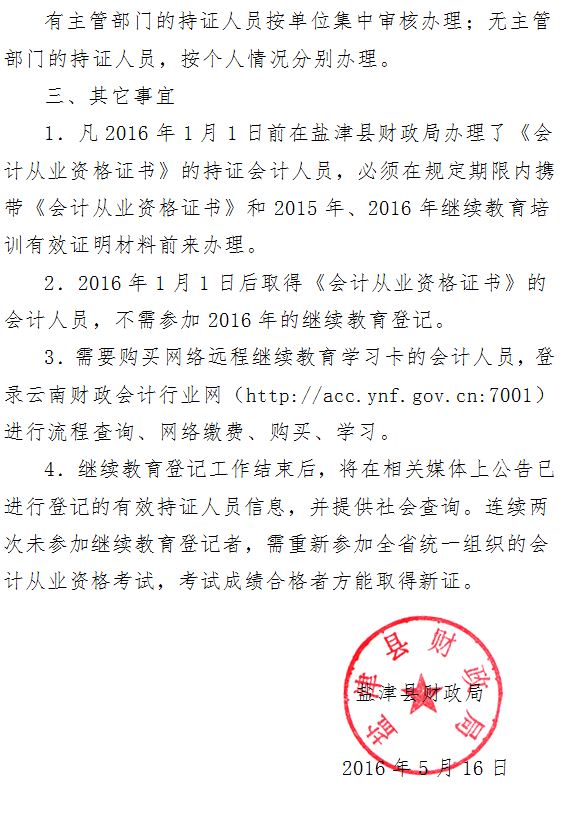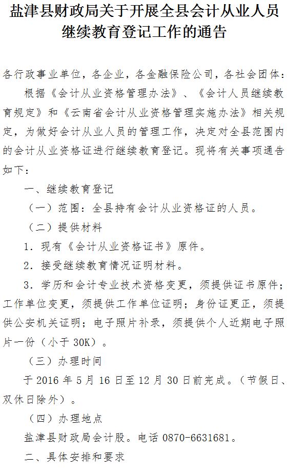 鹽津縣2016年會(huì)計(jì)從業(yè)人員繼續(xù)教育登記工作的通告