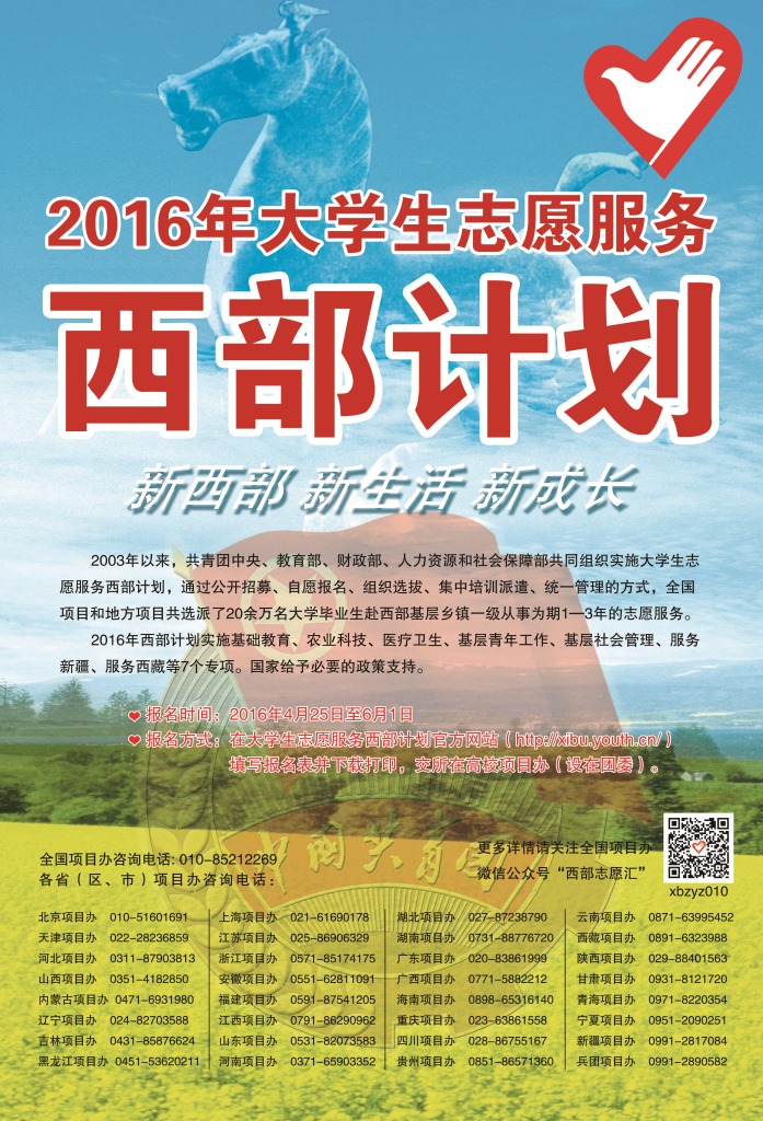 關(guān)于2016年大學(xué)生志愿服務(wù)西部計(jì)劃志愿者招募的通知