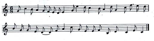 35.在答題卷上重寫(xiě)下列曲譜,按指定拍號(hào)畫(huà)出小節(jié),并按音樂(lè)旋律進(jìn)行加以正確的節(jié)奏組合。