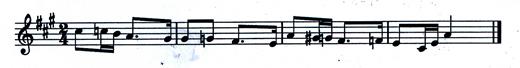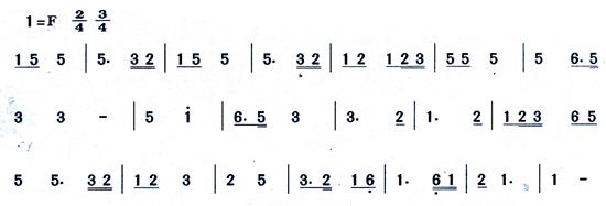 37.將以下曲調(diào)移高小二度、并重新記譜(要求寫(xiě)出新調(diào)調(diào)號(hào))。