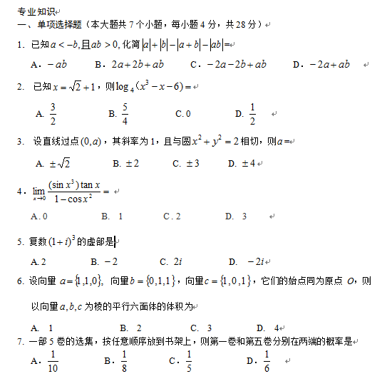 知識是指本大綱中所列考試內(nèi)容中的數(shù)學(xué)概念、性質(zhì)、法則、公式、公理、定理以及其中的數(shù)學(xué)思想和方法。對知識的要求要達到(1)理解和掌握、(2)靈活和綜合運用、(3)全面系統(tǒng)把握知識的相互聯(lián)系和規(guī)律三個層次。對于考試內(nèi)容中所列高中數(shù)學(xué)知識要求達到(1)、(2)、(3)層次;大學(xué)數(shù)學(xué)知識要求達到(1)、(2)層次要求。