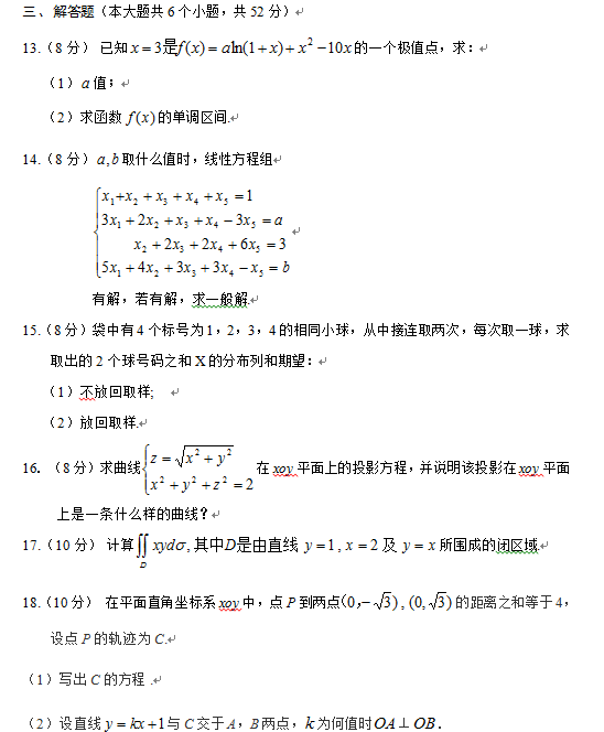 (2)多變量積分學(xué):二重積分、三重積分的定義和性質(zhì),重積分的計算及應(yīng)用,二重積分的計算、三重積分的計算。