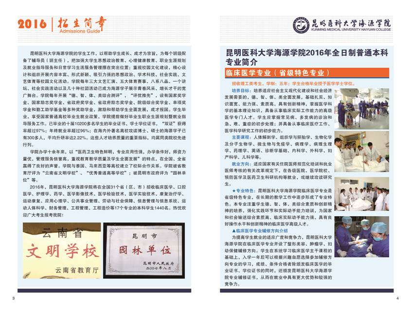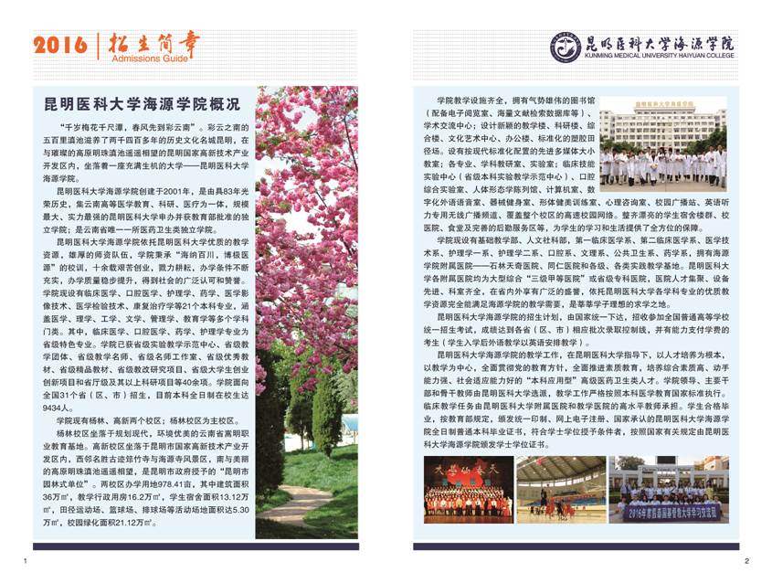 昆明醫(yī)科大學(xué)海源學(xué)院2016年全日制普通本科招生簡章