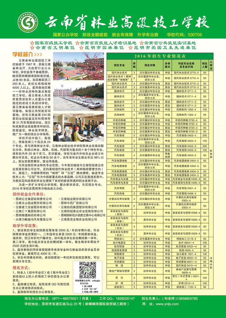 云南省林業(yè)高級技工學(xué)校2016年秋季招生簡章