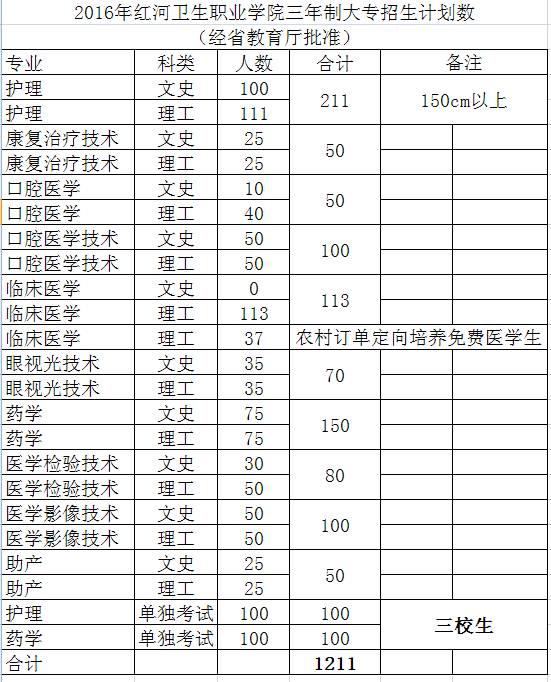 紅河衛(wèi)生職業(yè)學(xué)院2016年三年制大專招生