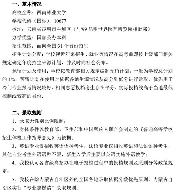 2025年西南林業(yè)大學(xué)普通本科招生章程