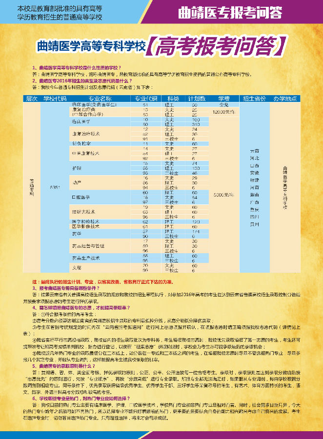 曲靖醫(yī)學(xué)高等??茖W(xué)校2016年招生簡章