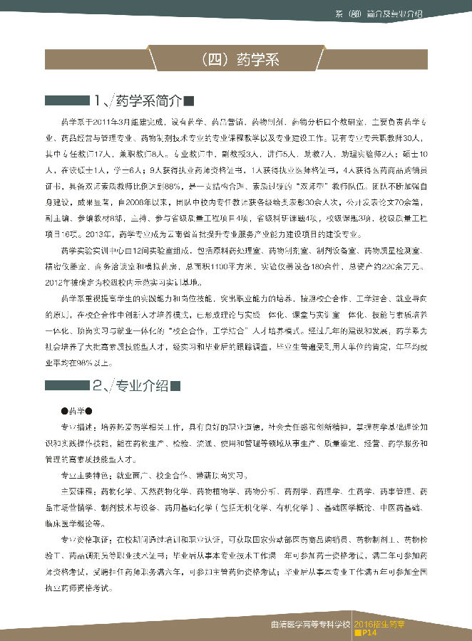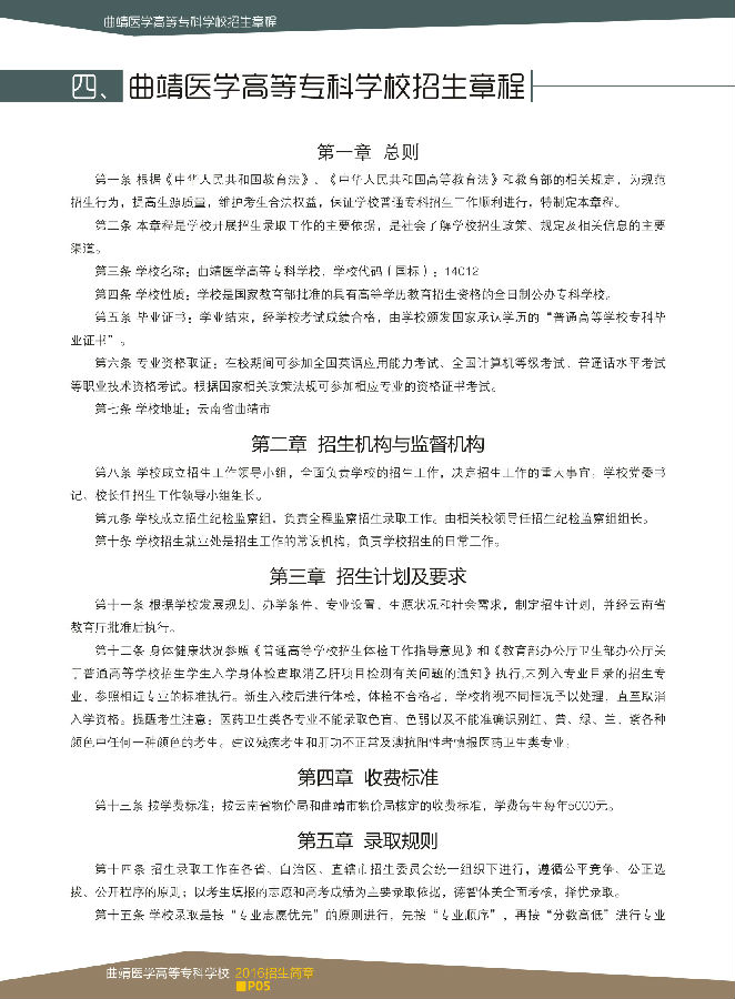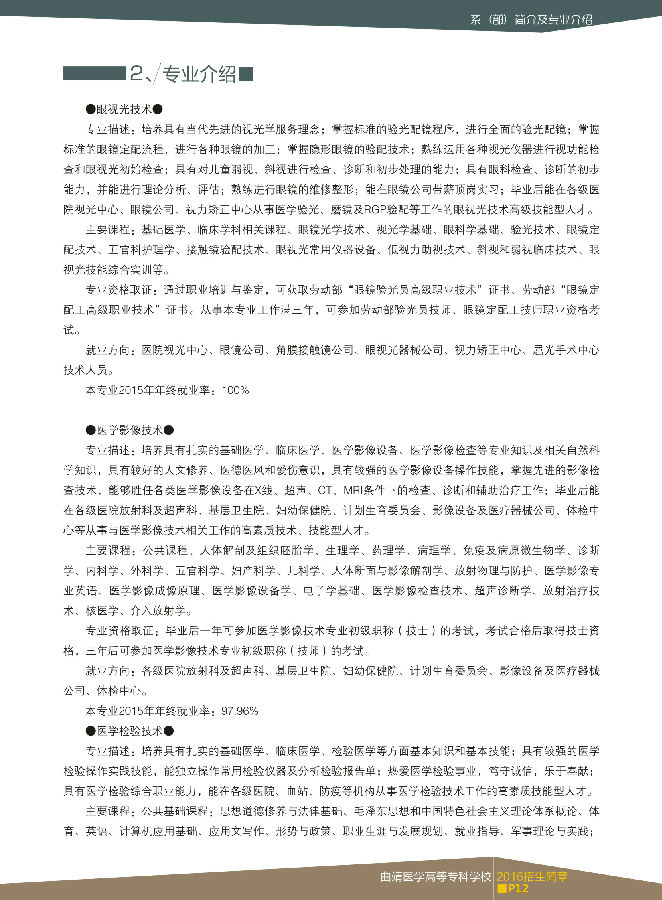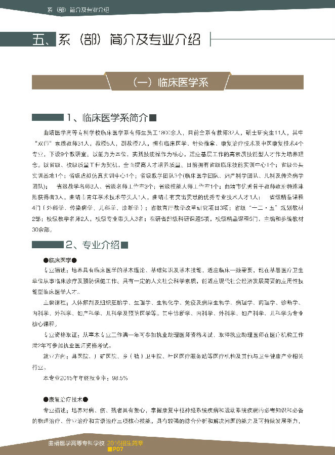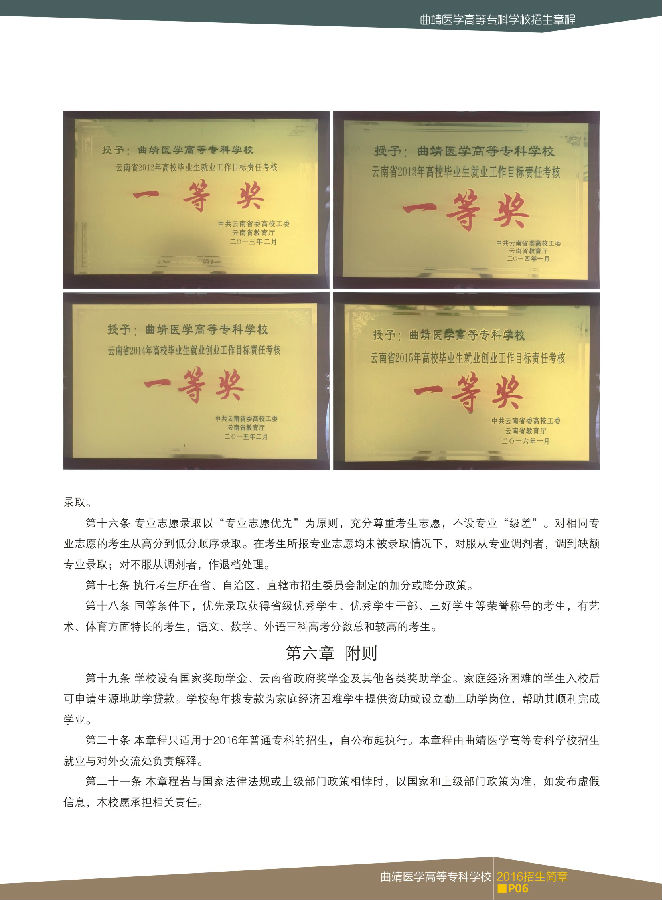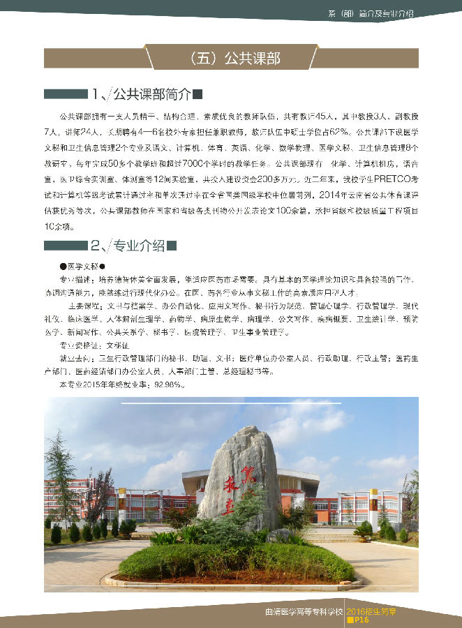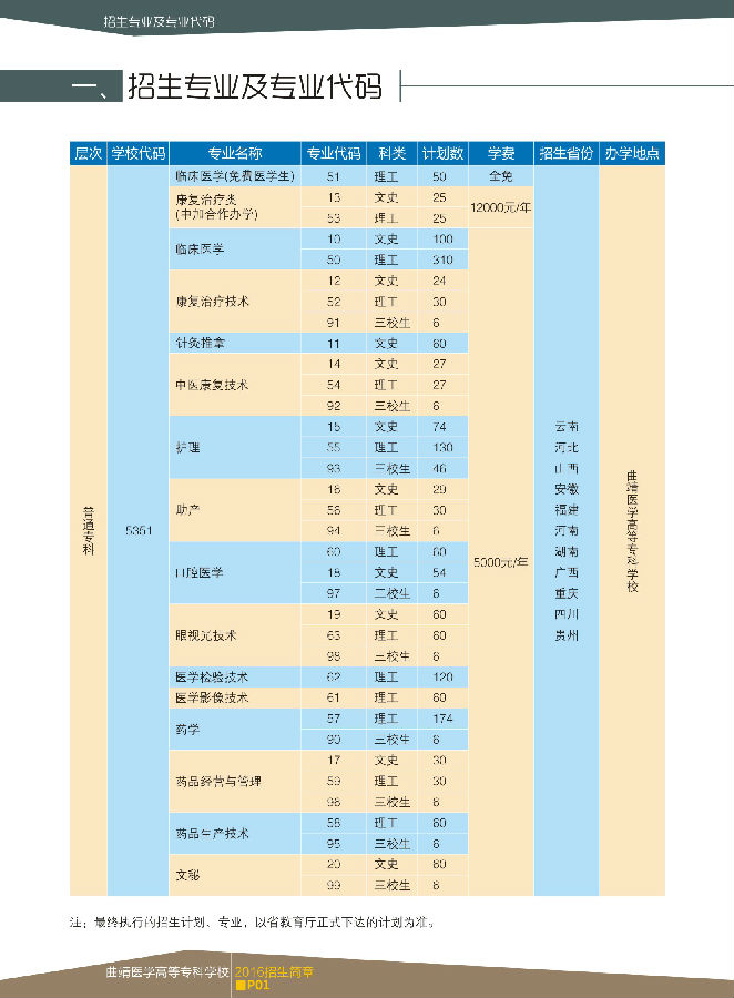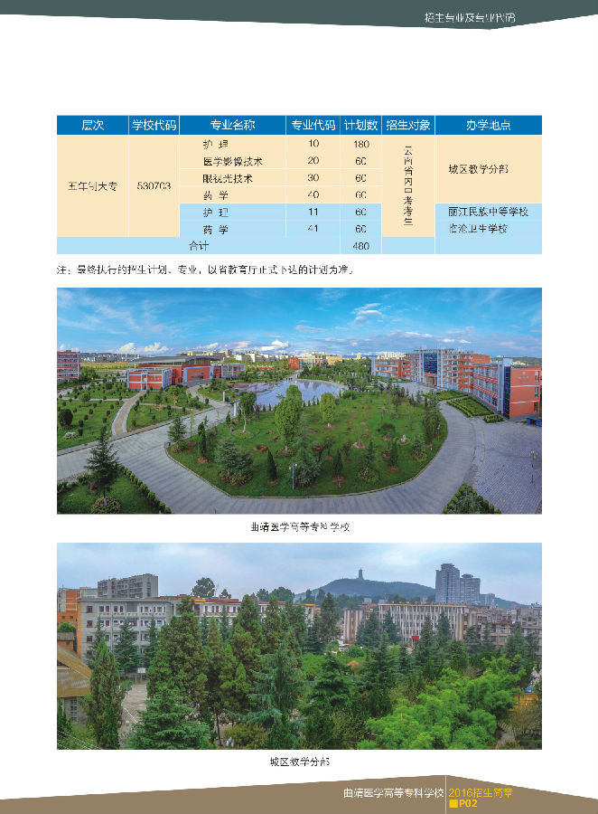 曲靖醫(yī)學高等專科學校2016年招生簡章