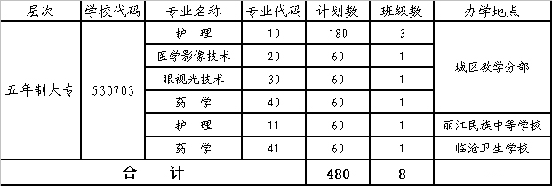 曲靖醫(yī)學(xué)高等專(zhuān)科學(xué)校2016年五年制大專(zhuān)招生計(jì)劃