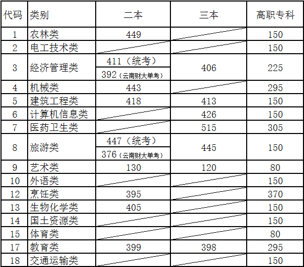 2016年云南省高職招收“三校生”錄取最低控制分數(shù)線