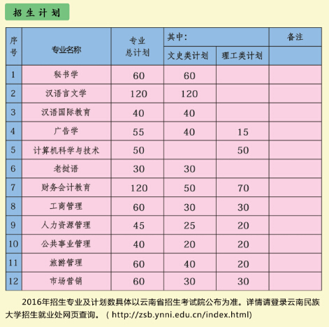 云南民族大學(xué)應(yīng)用技術(shù)學(xué)院(原云南民族大學(xué)文化學(xué)院)是云南民族大學(xué)為貫徹云南省教育廳《關(guān)于云南民族大學(xué)深化高職本科辦學(xué)體制機(jī)制改革的批復(fù)》(云教高﹝2011﹞35號(hào))文件精神,進(jìn)一步適應(yīng)區(qū)域經(jīng)濟(jì)社會(huì)發(fā)展,深化應(yīng)用本科辦學(xué)體制機(jī)制改革,探索校企合作辦學(xué)新模式,培養(yǎng)適應(yīng)產(chǎn)業(yè)發(fā)展急需的應(yīng)用型創(chuàng)新人才而成立的公辦全日制綜合性應(yīng)用本科學(xué)院。學(xué)院實(shí)現(xiàn)了各專業(yè)教師、教學(xué)資源與云南民族大學(xué)本部共享,現(xiàn)有師資500余人,其中,教授、副教授103人,博士、碩士280余人,“雙師型”教師比例達(dá)到46.8%。根據(jù)社會(huì)需求,專業(yè)設(shè)置秘書學(xué)、漢語言文學(xué)、漢語國(guó)際教育、廣告學(xué)、財(cái)務(wù)會(huì)計(jì)教育、工商管理等12個(gè)應(yīng)用本科專業(yè),在校生達(dá)5000余人。