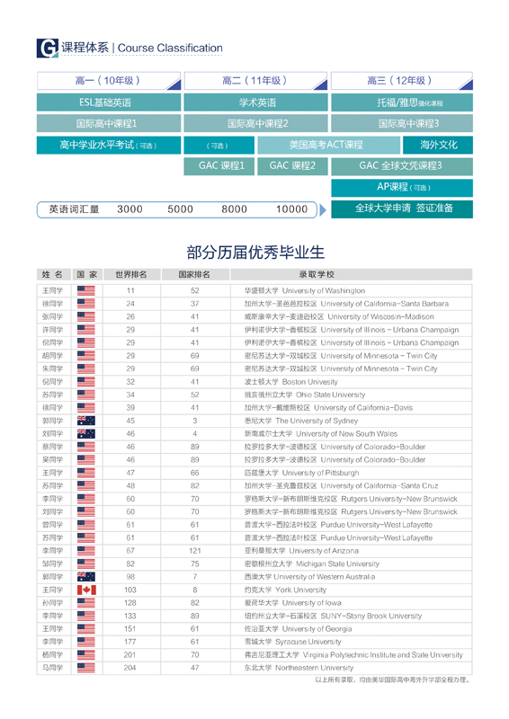 通過引進(jìn)英美原版高中課程和教學(xué)模式,并由云南師大附中和跨國教育專家組成的中外教研團(tuán)隊精心融合構(gòu)建了中外結(jié)合的階梯式課程體系,致力于培養(yǎng)學(xué)生完成從國內(nèi)中學(xué)課堂教育模式到海外大學(xué)自主性學(xué)習(xí)方式的平穩(wěn)過渡。