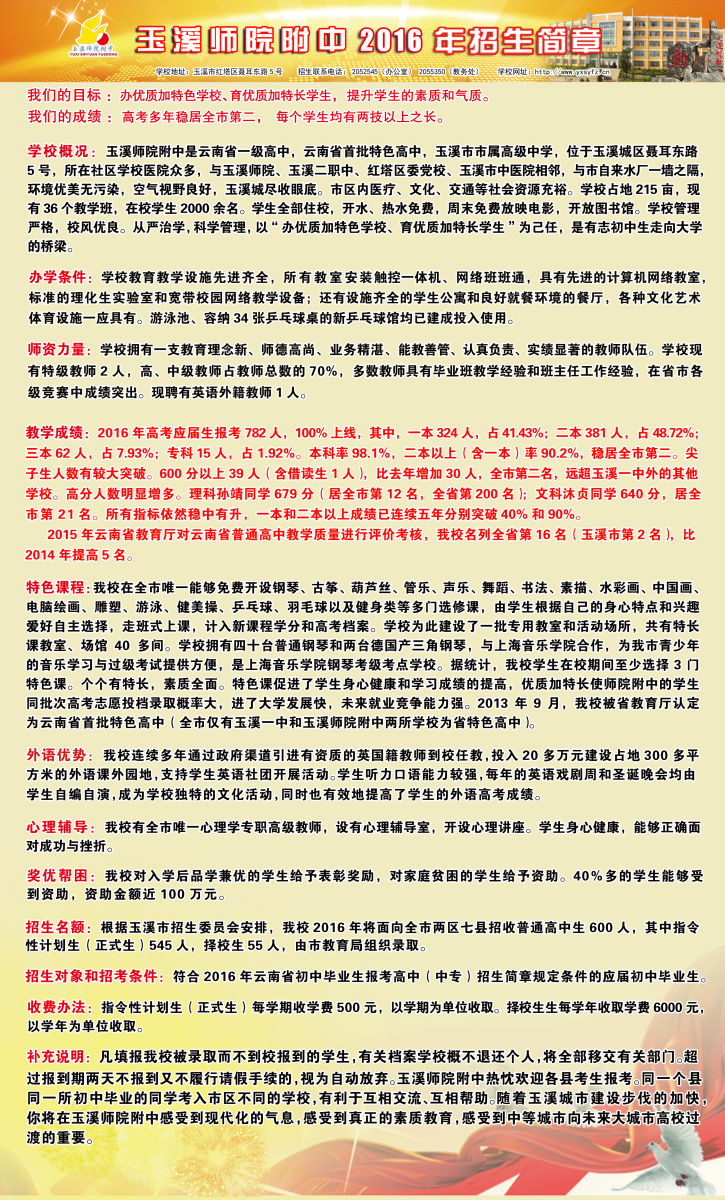 2016年云南省建水第一中學(xué)普通高中招生簡章