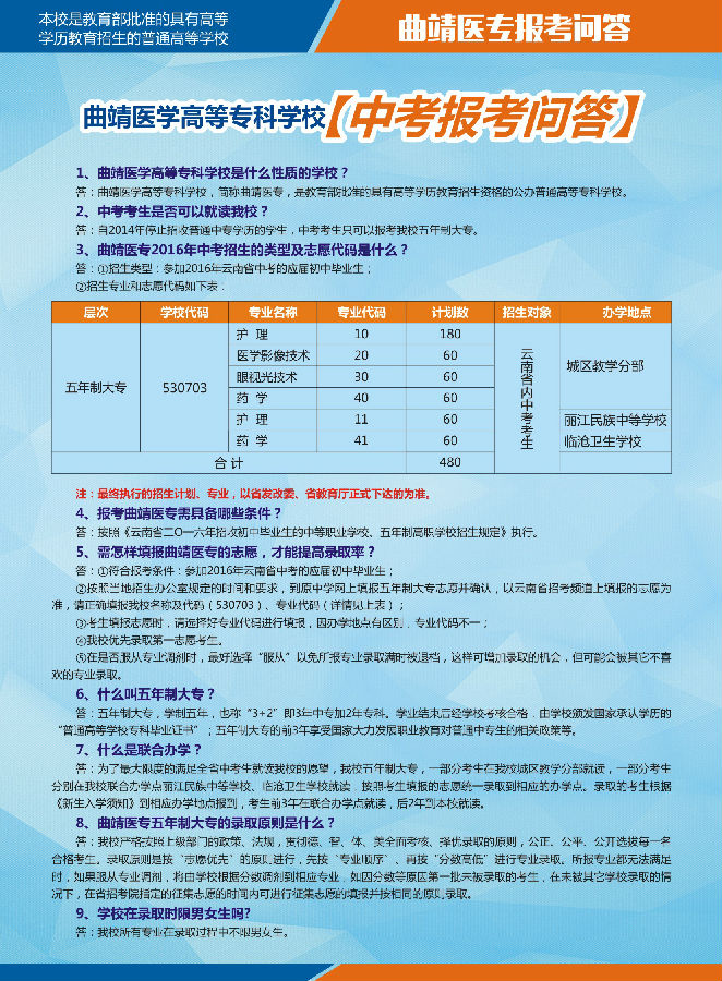曲靖醫(yī)學(xué)高等??茖W(xué)校中考報考問答