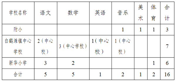 3.報(bào)考小學(xué)教學(xué)崗位要求具有國民教育系列??萍耙陨蠈W(xué)歷,在我縣鄉(xiāng)鎮(zhèn)學(xué)校工作滿3年及以上(即2013年9月30日前參加工作);具有小學(xué)及以上教師資格。報(bào)考小學(xué)語文、數(shù)學(xué)崗位不限專業(yè),報(bào)考小學(xué)英語、體育、美術(shù)崗位需專業(yè)對(duì)口。