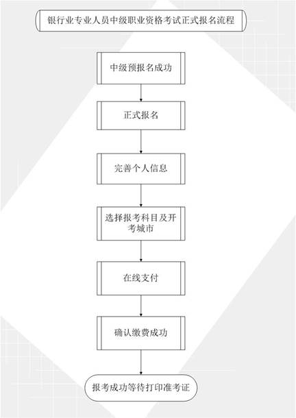 預(yù)報(bào)名審核通過(guò)后即獲得銀行業(yè)專業(yè)人員(中級(jí))職業(yè)資格考試的報(bào)名資格,考生可用已注冊(cè)的用戶名及密碼登錄進(jìn)行正式報(bào)名。預(yù)報(bào)名階段不繳納任何費(fèi)用,僅完成報(bào)名資格審核,此資格長(zhǎng)期保留并有效。