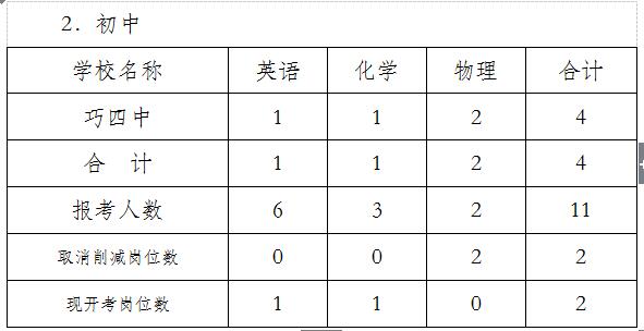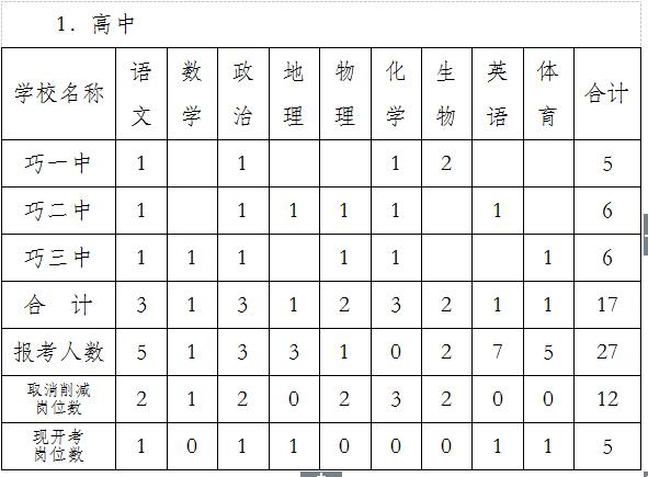 注:削減選調(diào)崗位為:巧一中和巧二中的高中語文、政治崗位各1個。