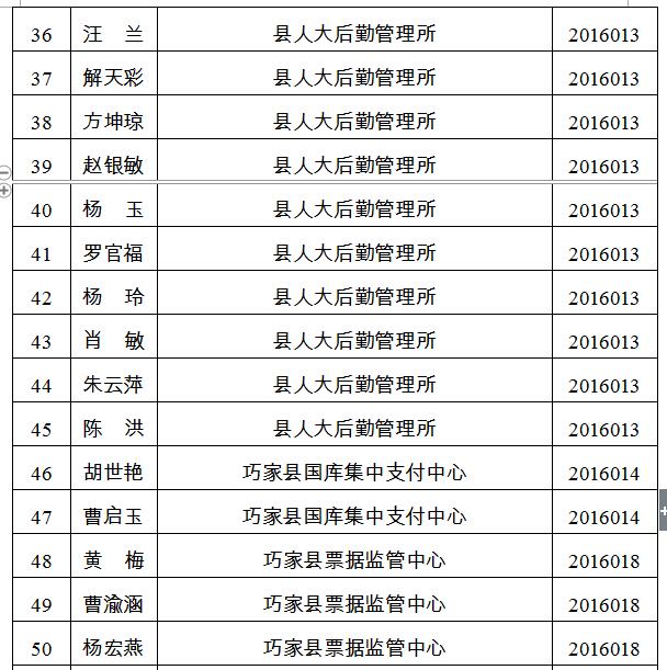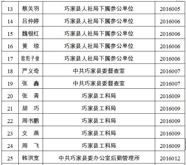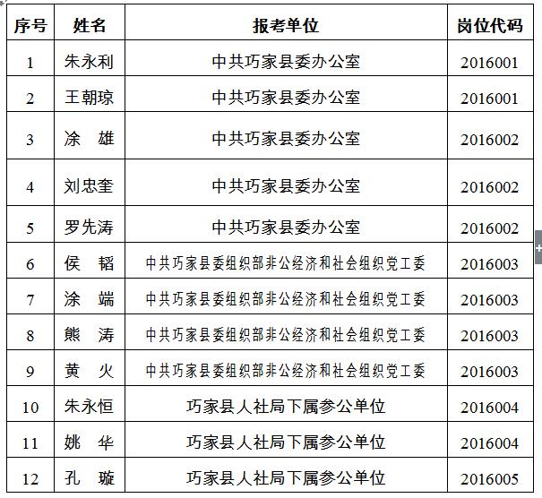 一、巧家縣2016年下半年縣直機關事業(yè)單位公開選調工作人員報名情況