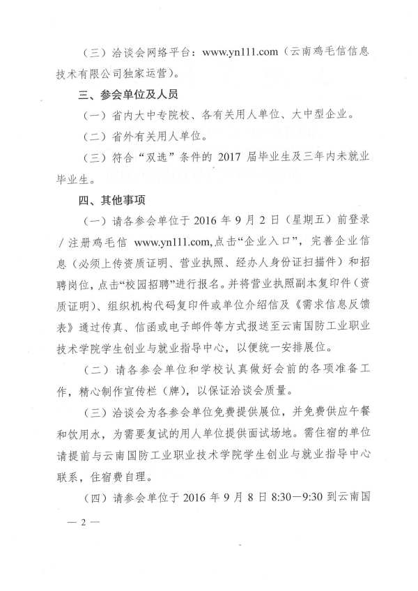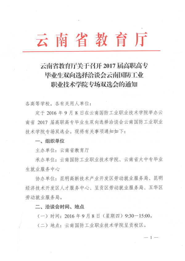 云南國防工業(yè)職業(yè)技術(shù)學(xué)院專場雙選會(huì)的通知