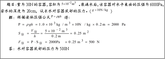 6.(1)該同學(xué)解題錯誤表現(xiàn)在對容器底部面積的計算,不能用計算。由于題目中沒有明確容器的規(guī)則形狀,容器底部的面積需要運(yùn)用