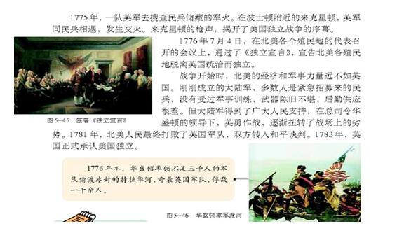 下面是關(guān)于《美國(guó)獨(dú)立戰(zhàn)爭(zhēng)》一課的部分內(nèi)容,請(qǐng)根據(jù)要求回答問(wèn)題。