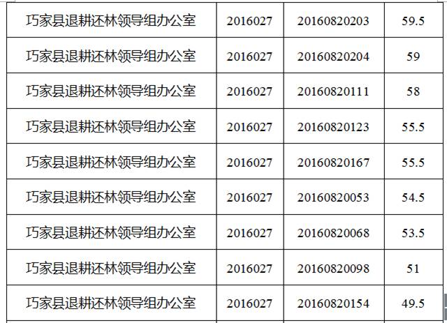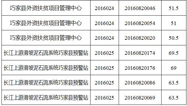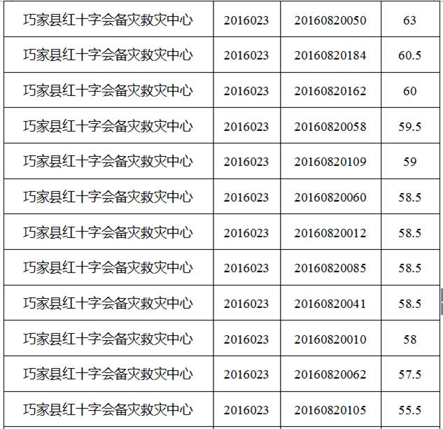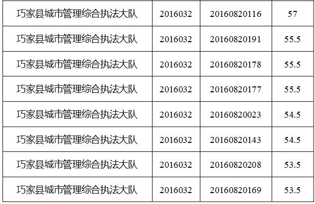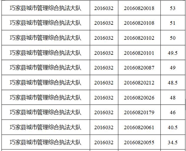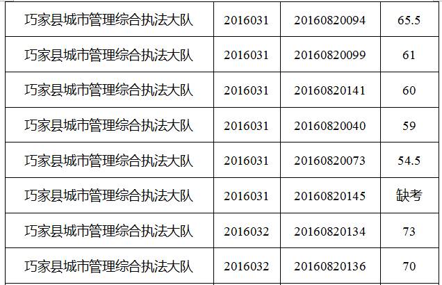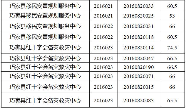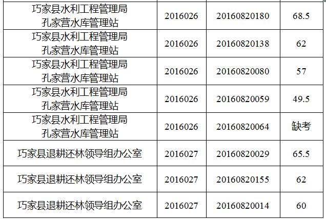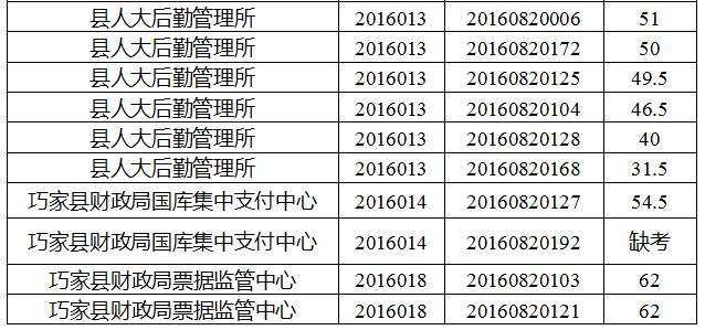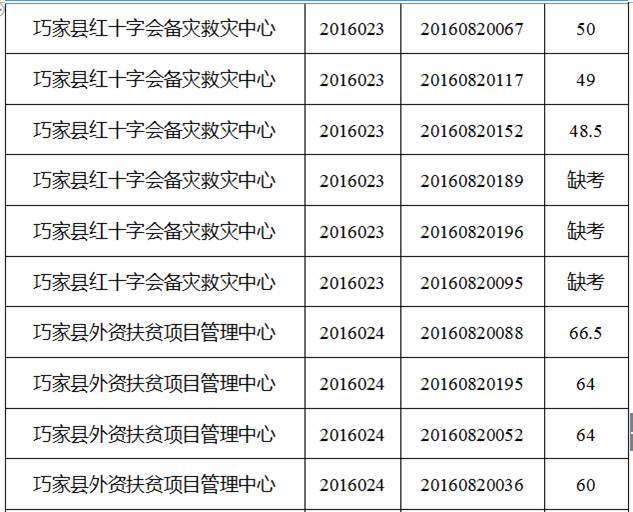 巧家縣縣直機關事業(yè)單位2016年下半年公開選調工作人員筆試工作已經結束,現將筆試成績公告如下: