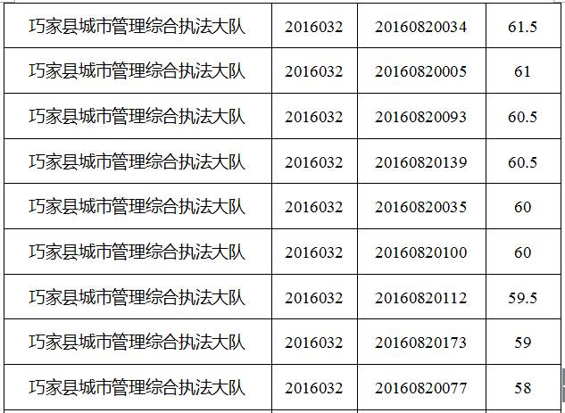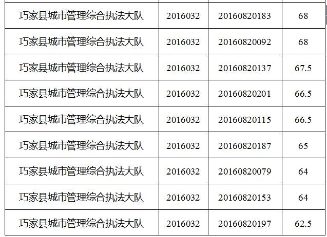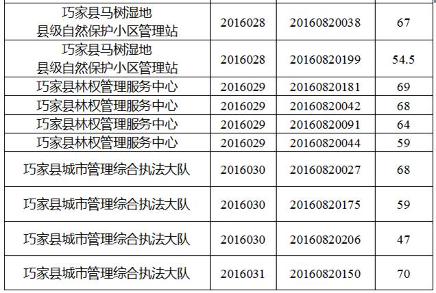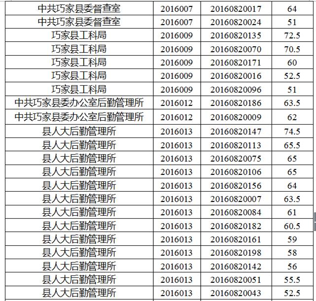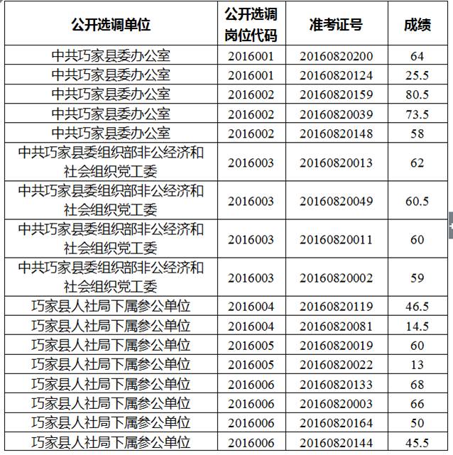 一、巧家縣縣直機關事業(yè)單位2016年下半年公開選調筆試成績