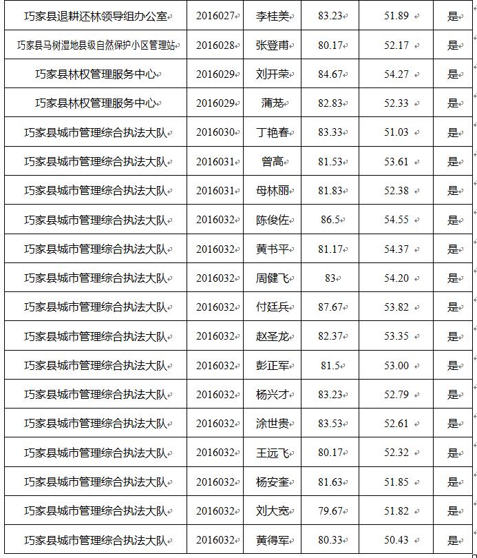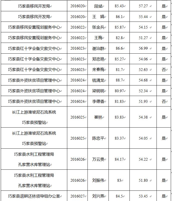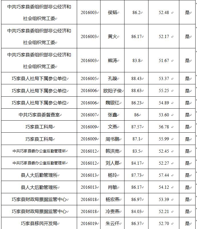 一、巧家縣縣直機(jī)關(guān)事業(yè)單位2016年下半年公開選調(diào)工作人員面試成績及進(jìn)入考察和業(yè)績評價(jià)人選